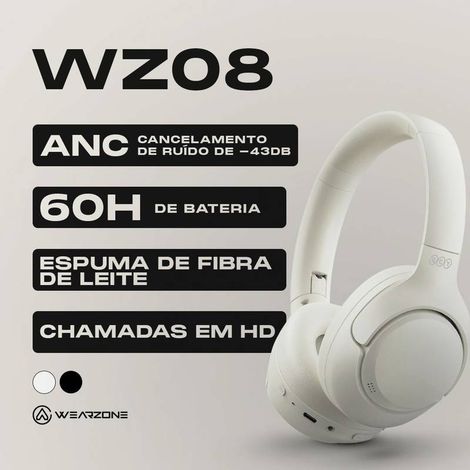 HEADSET WZ08 | CANCELAMENTO DE RUÍDO PROFUNDO| ATÉ 60 HORAS DE BATERIA| CHAMADAS EM HD