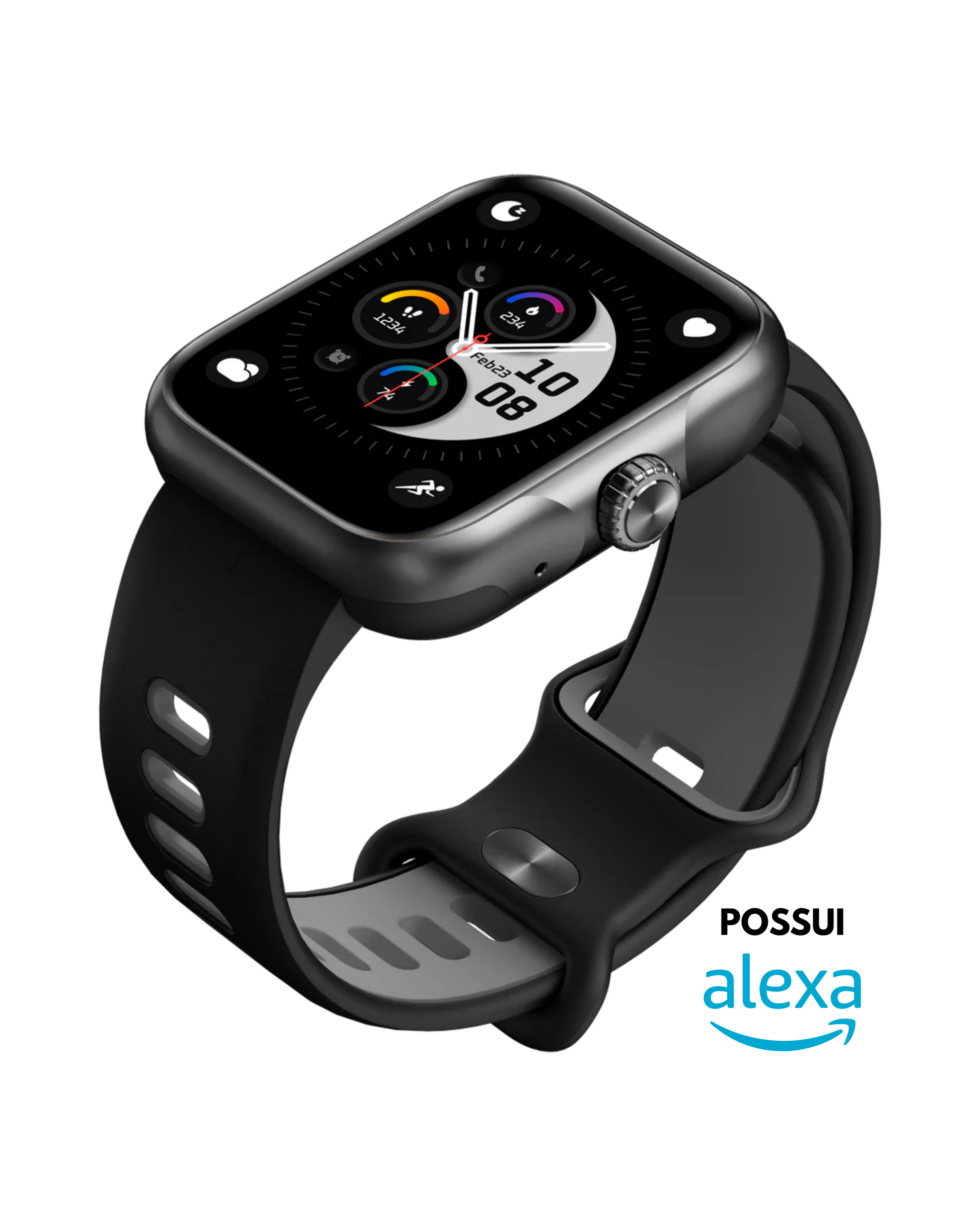 Seu design exclusivo combina robustez e elegância, com borda em alumínio e tela AMOLED de alta definição, garantindo visual moderno e excelente visibilidade até sob luz solar.